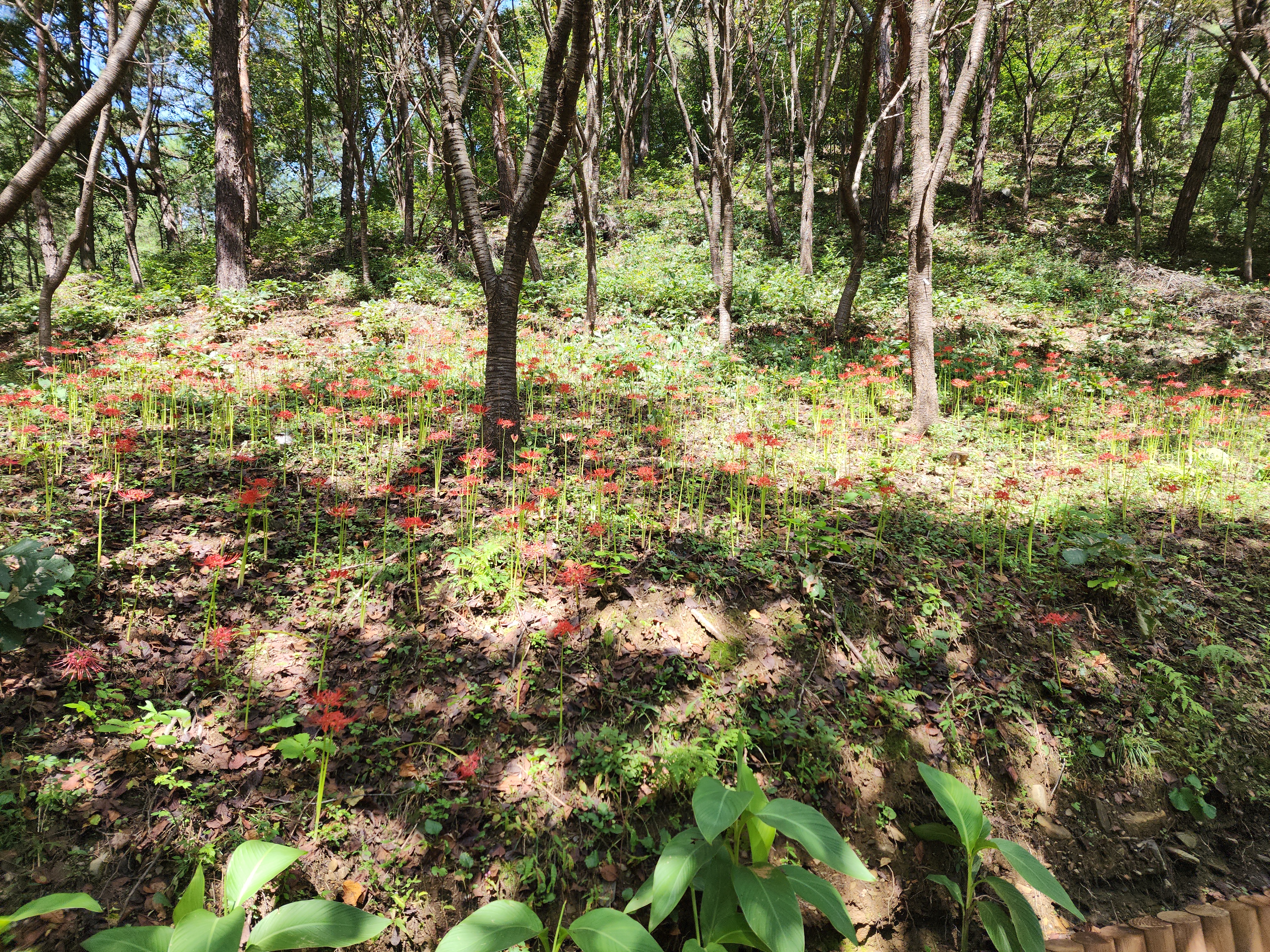 황톳길 양쪽으로 꽃무릇이 만개하였다.