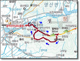 영산석빙고주차장 - 함박공원 - 함박약수터 - 약수사 - 함박산 - 종암산갈림길 - 호랑이동굴 - 너덜지대 - 약수터갈림길 - 약수사 -석빙고주차장