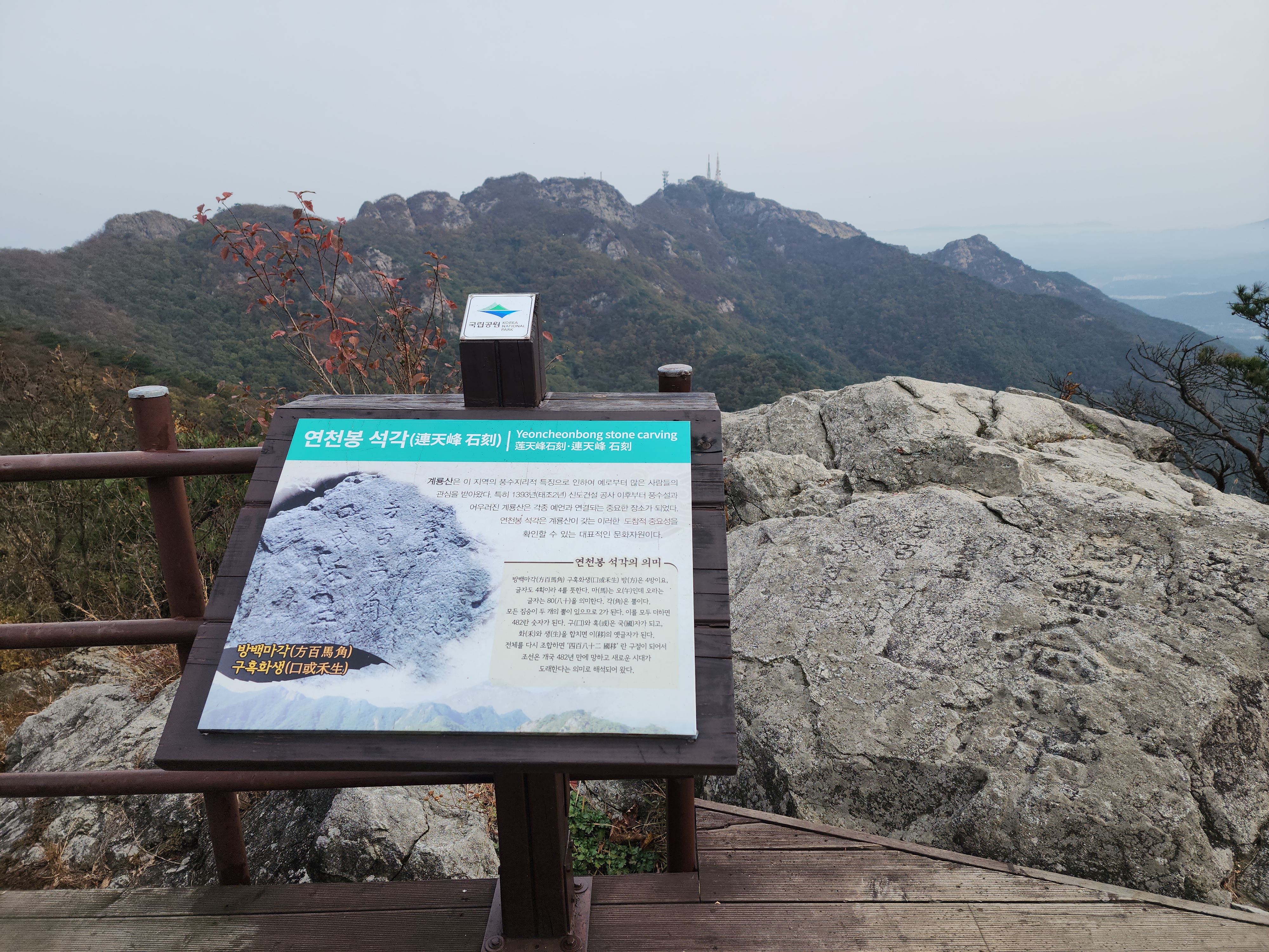 주봉인 천황봉은 군사구역으로 일반인의 출입을 금하고 있어 현재 계룡산 정상 역할을 하는 관음봉이다. 4년만에 다시 왔다